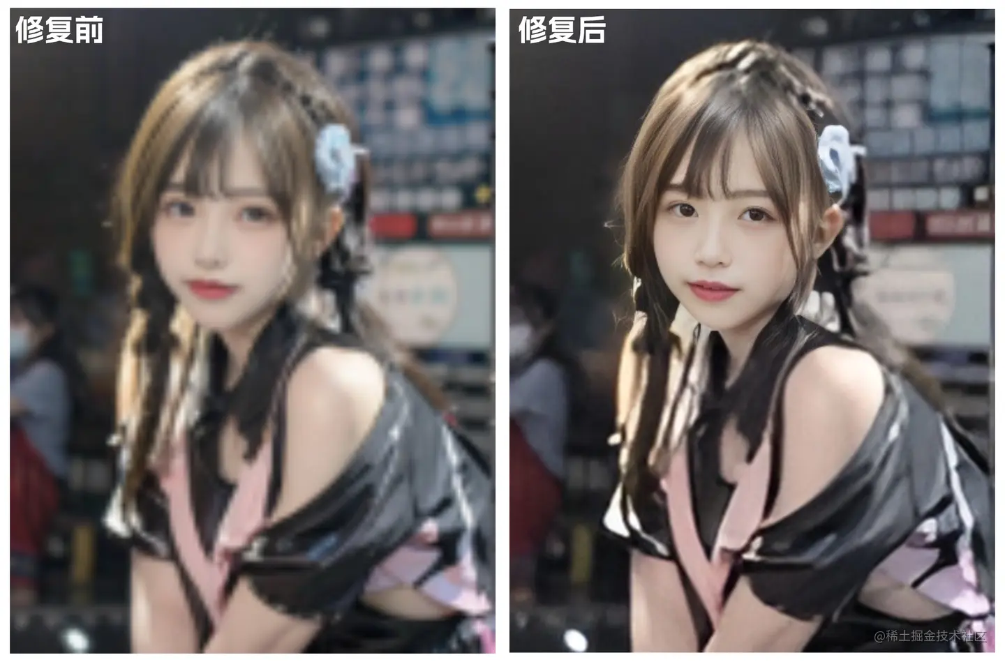 让我们一起来看看修复效果对比吧!AI不仅能够让图片变清晰,还会根据图像分析自动修复填充图片本身的细节,甚至能获得比原图更好的效果。