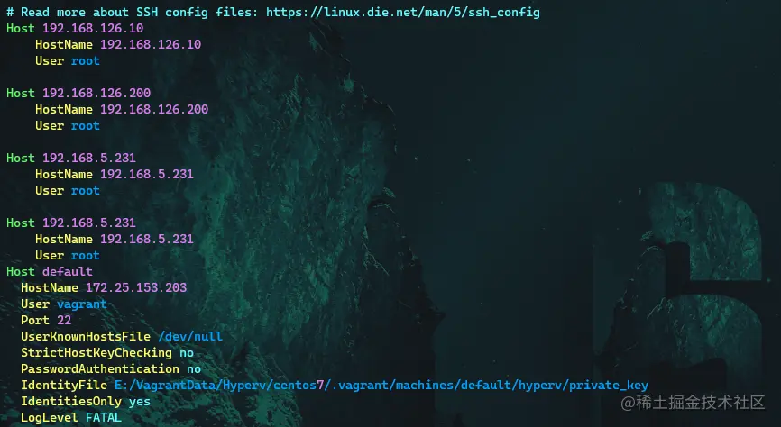 vagrant up的时候,vagrant会帮我们在.vagrant/provisioner/ansible/inventory/目录下生成一个vagrant_ansible_inventory文件 -