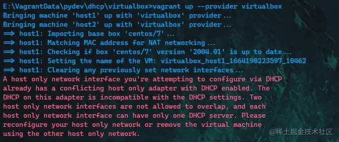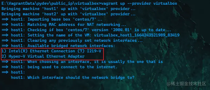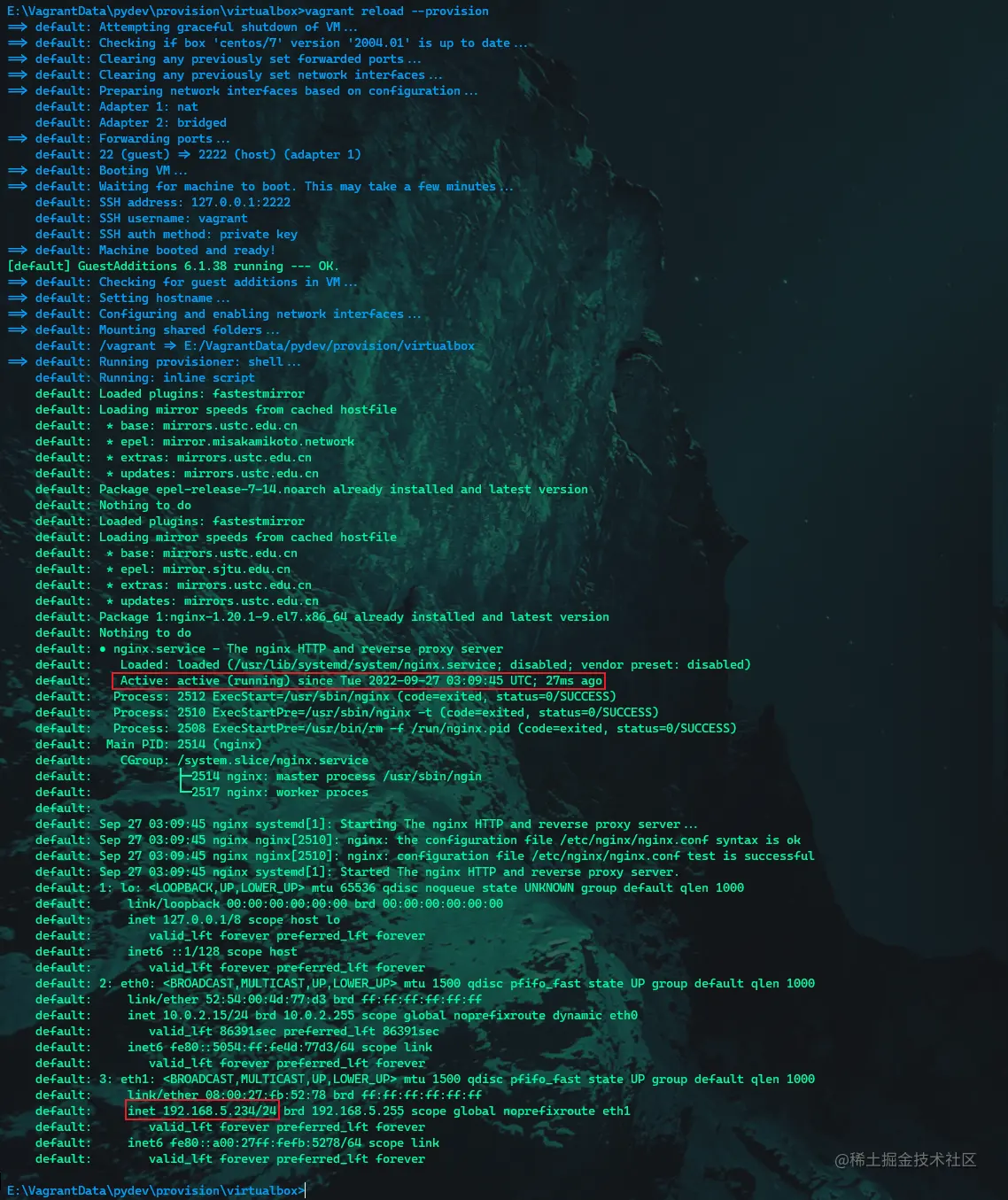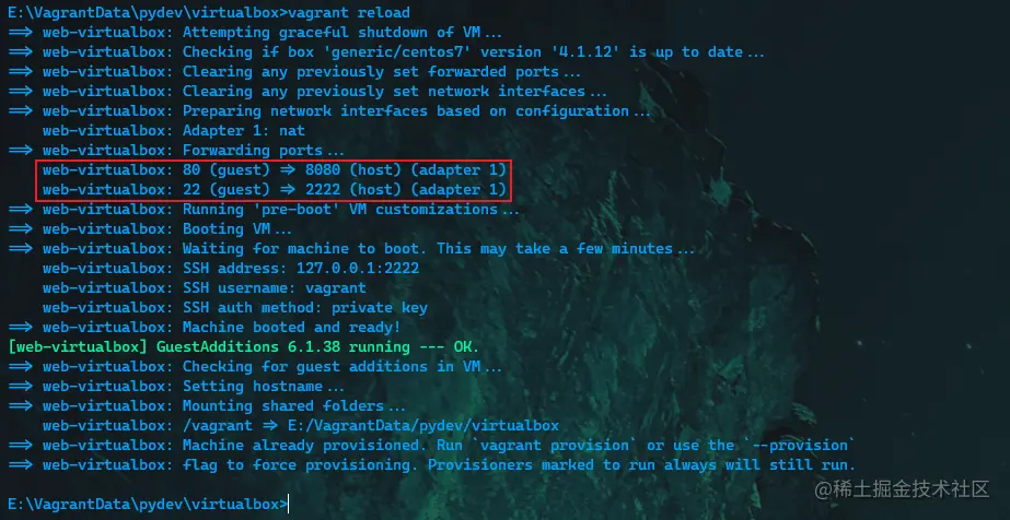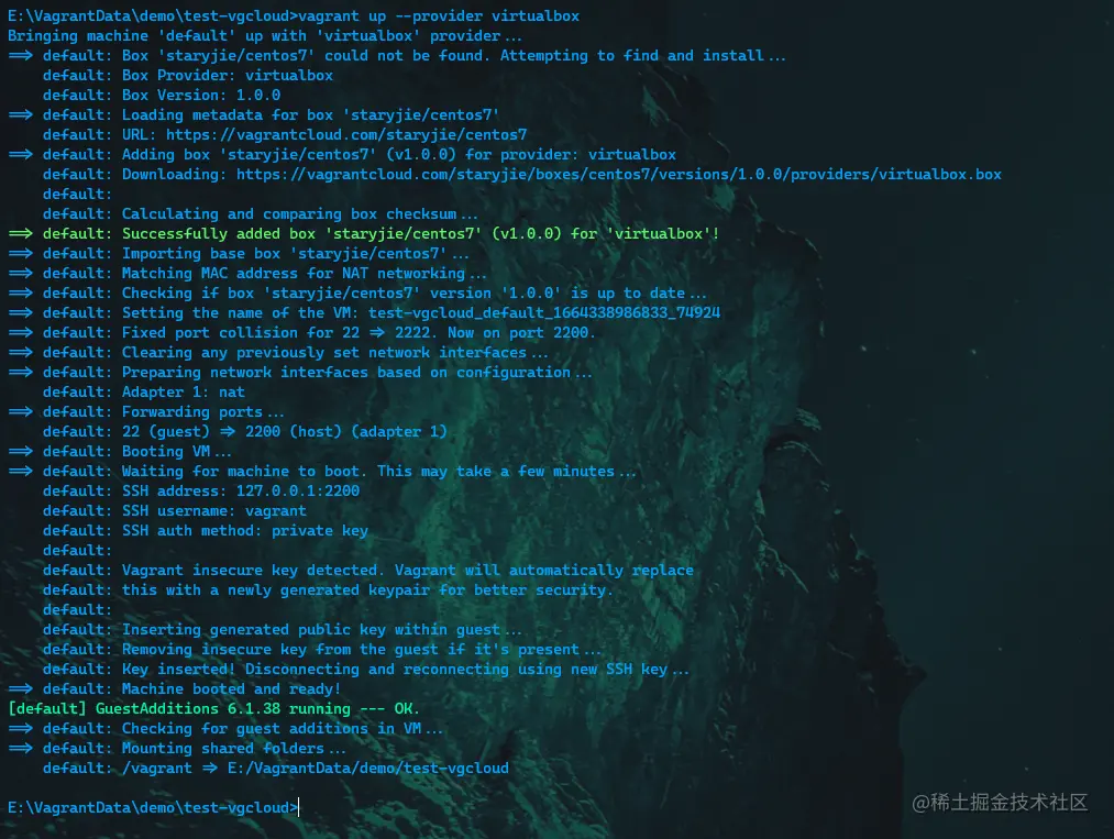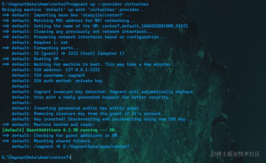 # 也可以不用指定 --provider=virtualbox 这是vagrant默认的provider