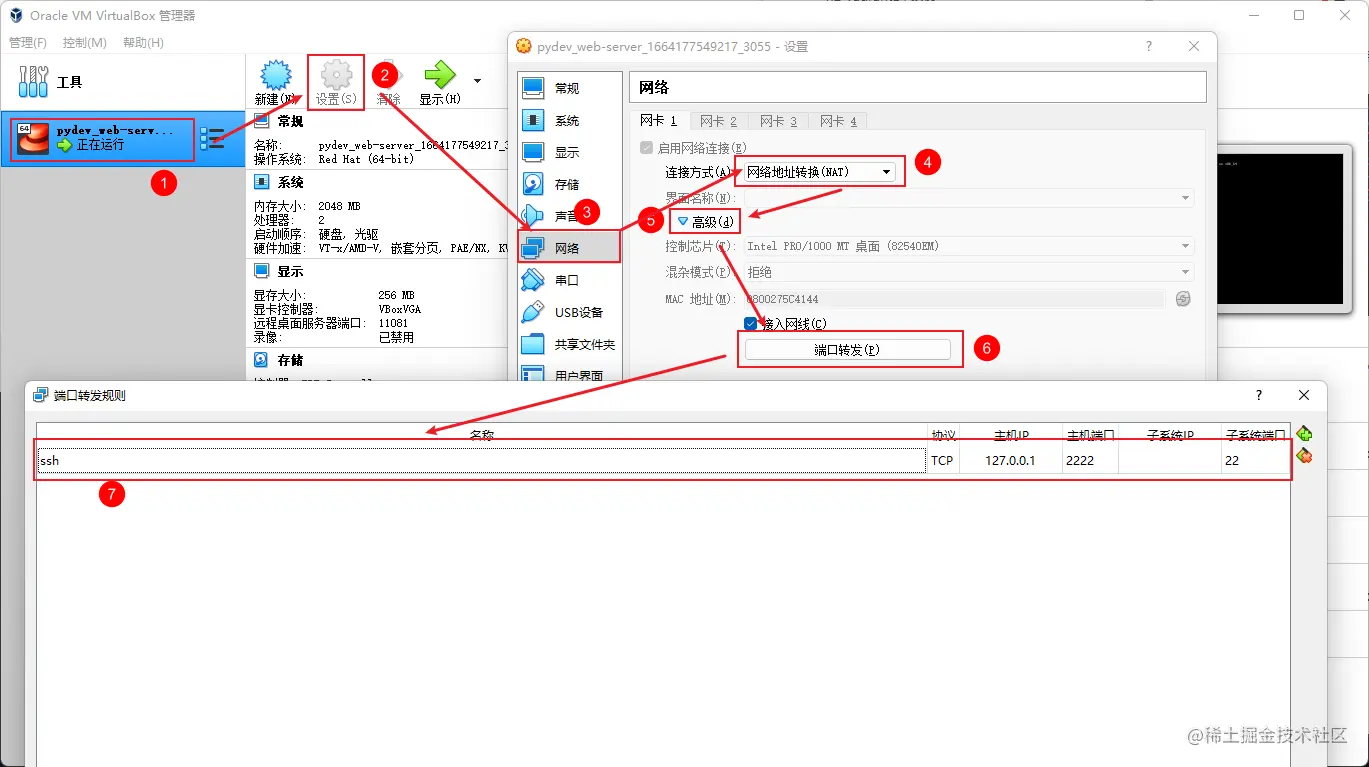 文件中配置了我们定义的VM的端口转发连接配置信息,内容大致如下: