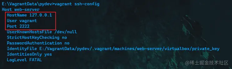 default ansible_hosrt=127.0.0.1 ansible_port=2222 ansible_user='vagrant' ansible_ssh_private_key_file='/Users/staryjie/vagrant/vagrant-ansible/.vagrant/machines/default/virtualbox/private_key' -