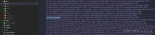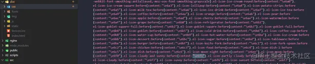 自己在本地 build 打包看了下源码,dist/css/app.xxx.css,里面的字体图标的 content 也确实是乱码: