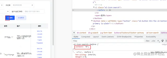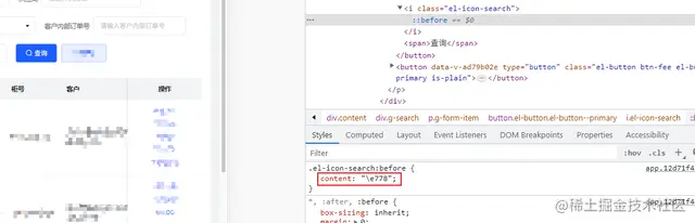 立马跑到线上去排查,在自己电脑上登录进去看样式也没啥问题呀,然后审查元素才看到字体图标的 content 里确实是乱码: