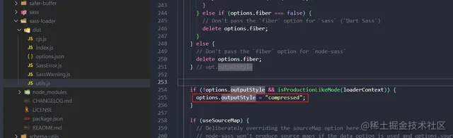 权衡之下选择了最优雅的最后一种,不过并没有去更改 sass 和 sass-loader 的版本,只修改了 outputStyle 配置,这个不设置默认会是 compressed: