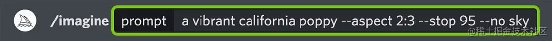 指令参数可更改图像的生成方式。指令参数可以更改图像的纵横比、在 Midjourney模型版本之间切换、更改使用的偏好设置等等。