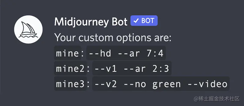 您可以通过输入命令与Discord上的Midjourney Bot (MJ机器人)进行交互。命令用于创建图像、更改默认设置、监视用户信息以及执行其他有用的任务。