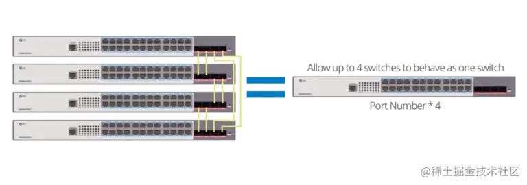 堆叠方式是一种将多个交换机堆叠在一起形成一个逻辑单元的网络结构方式。在堆叠方式中,多个交换机通过堆叠模块或接口连接在一起,形成一个逻辑上的单一交换机。这种方式下,多个交换机被视为一个整体进行管理和配置,提供了更高的可靠性和性能。
