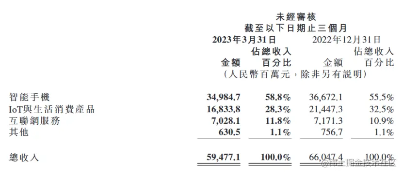 主要原因还是盈利业务增长比较困难。今年一季度,虽然小米盈利的水平在提高,但是营收仍处于下滑态势。