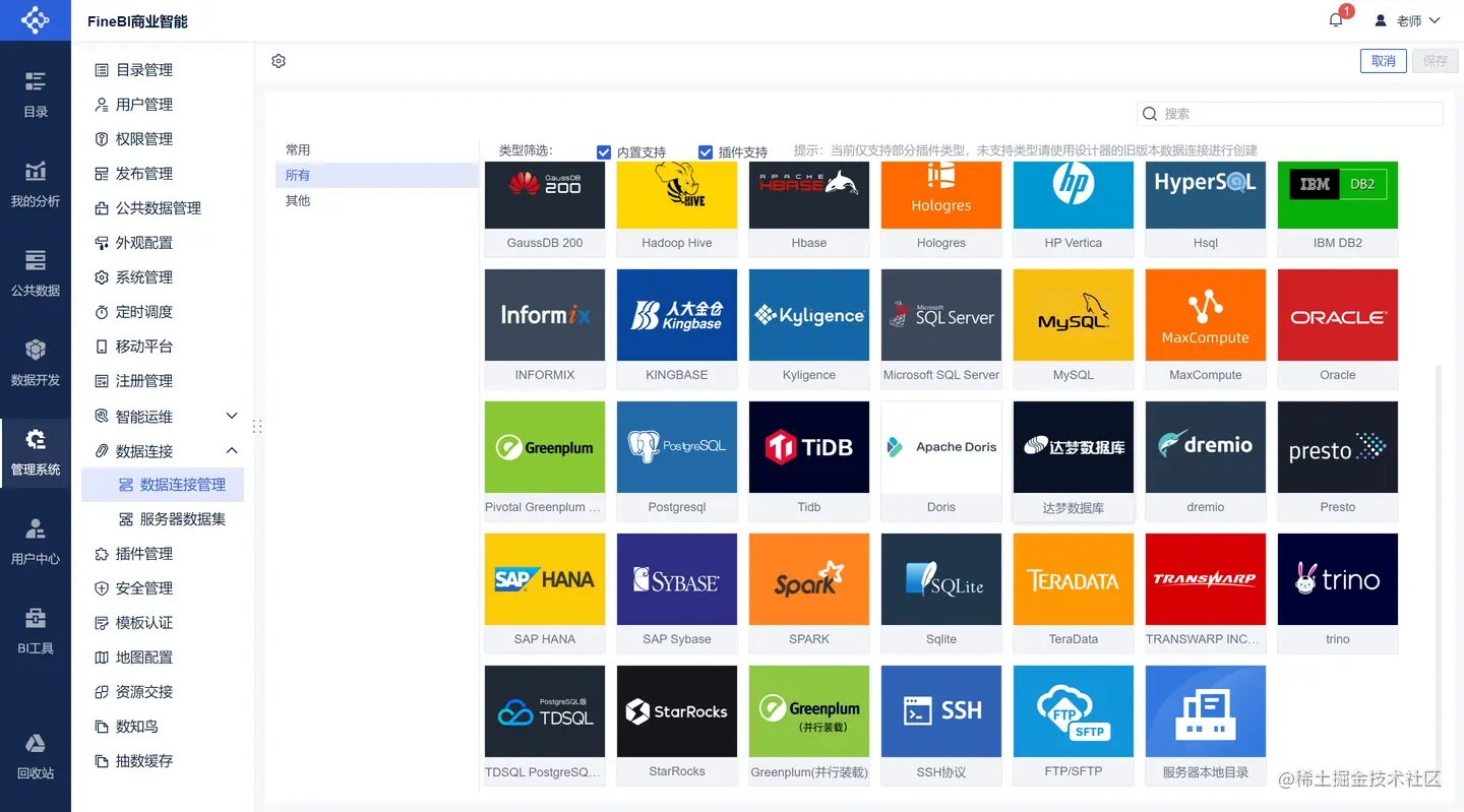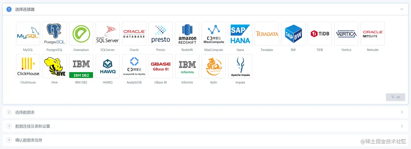 观远接入和帆软的步骤是一致的,都比较简单。观远基本支持市面上常见的数据库,如果没有特殊需求,也都够用了。