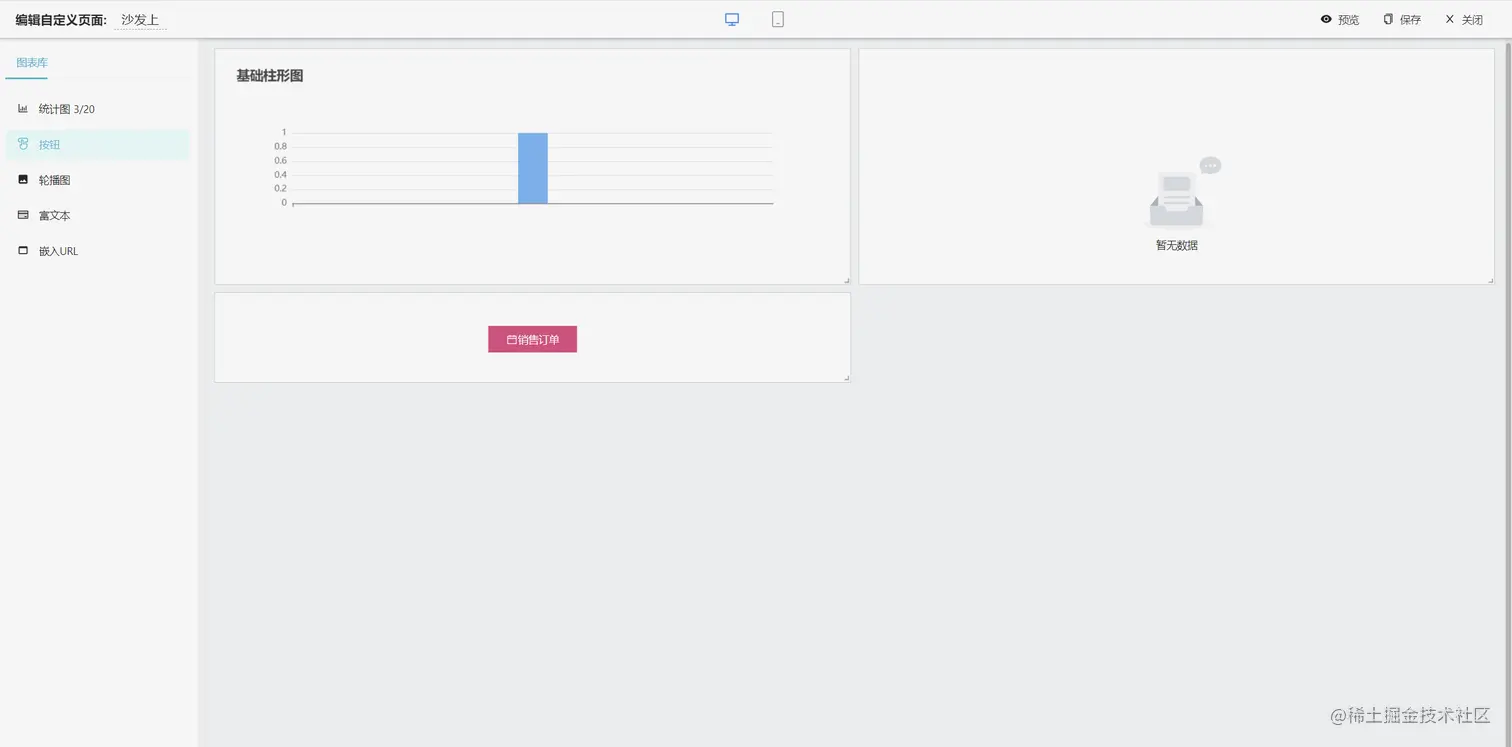 上面工作表的配置能力解决了表单的数据维护和工作表数据串联的问题,那下面我需要通过这些数据来展示报表、或者我需要一个展示数据的门户首页怎么办呢?这个时候就用到了仪表盘