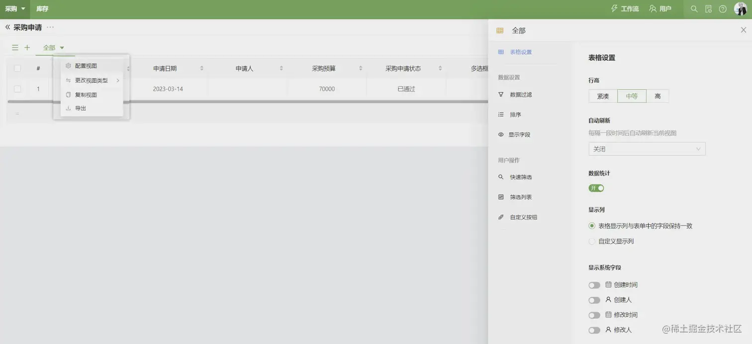 这里不仅仅是指表单设计器,还包括工作表的列表和视图功能,跟上面低代码 jeecg 相比较,零代码做的更加细致、配置也更加强大,可以做到列表多种视图、不同筛选条件、不同匹配规则、自定义按钮和不同风格等等。