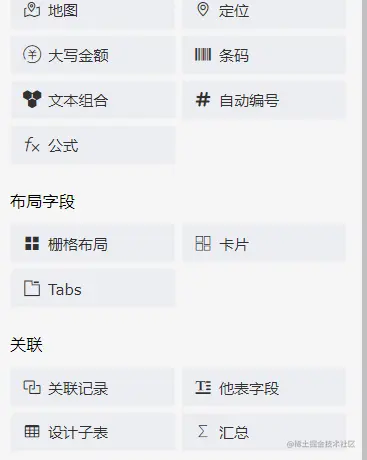 他也支持一对多、一对一等复杂模型,甚至支持关联记录、他表字段、组合文本等复杂的控件,直接选择其他表的字段作为当前表单的数据、或者通过其他表的多字段的组合值或者合计值来使用。
