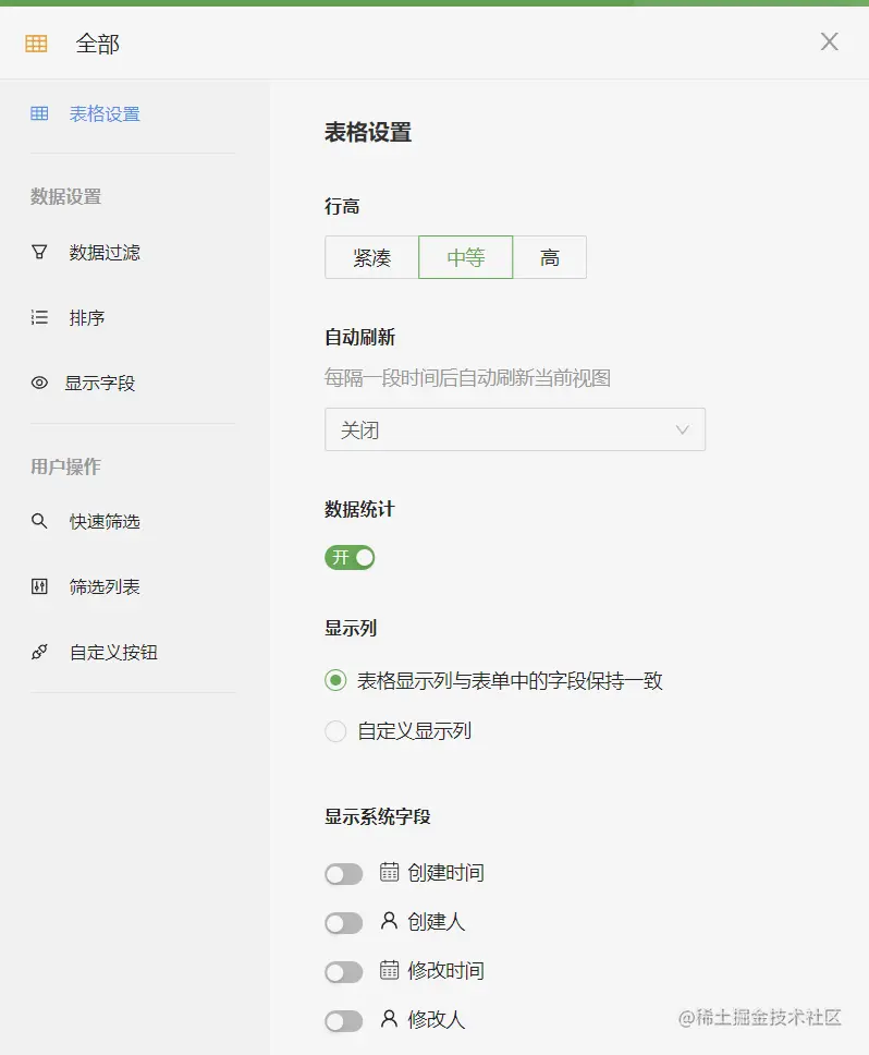 通过这个配置,就可以实现工作表的 数据列表功能、表单的增删改查功能和各种不同的查询功能,导入导出等等、设置不同视图等等。 关于表的基本维护就不用写代码了。