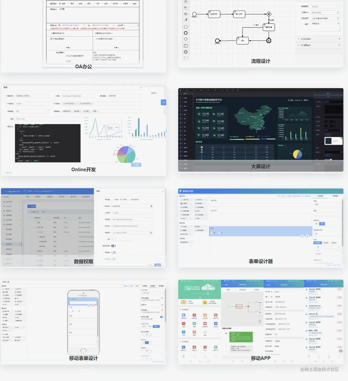 表单设计器、大屏设计器也是同理,传统的 OA 审批项目都具备在线设计工单或者叫表单的能力,但是与现在的表单设计器的智能化相比就显的很弱了。 随着技术的衍变,很多原来很复杂的功能,现在都可以简单实现,也更加易用,拥有更好的体验。