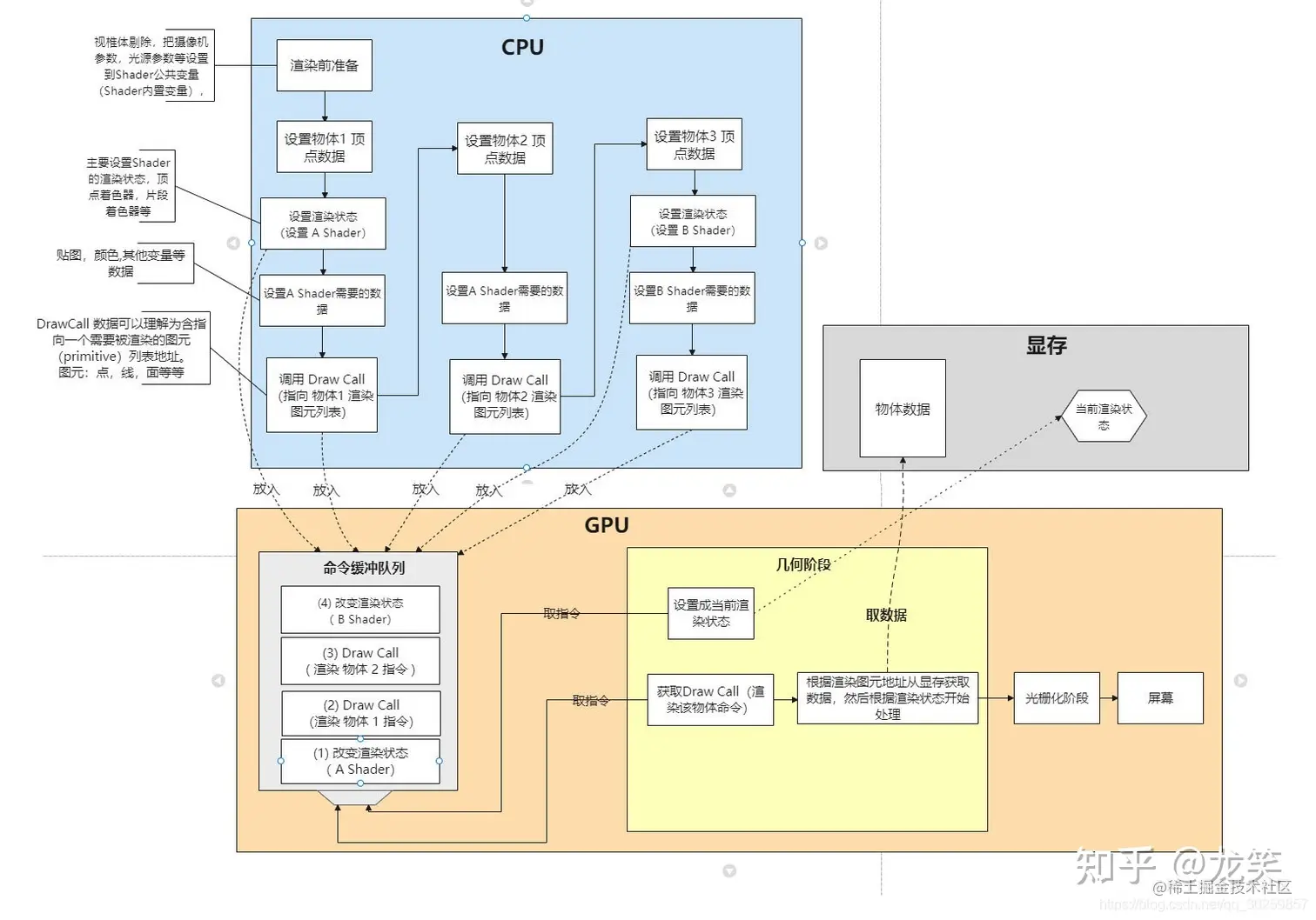 因为每次 draw call 有这些准备的动作,所以通常两次 draw call 会比一次花的时间多。