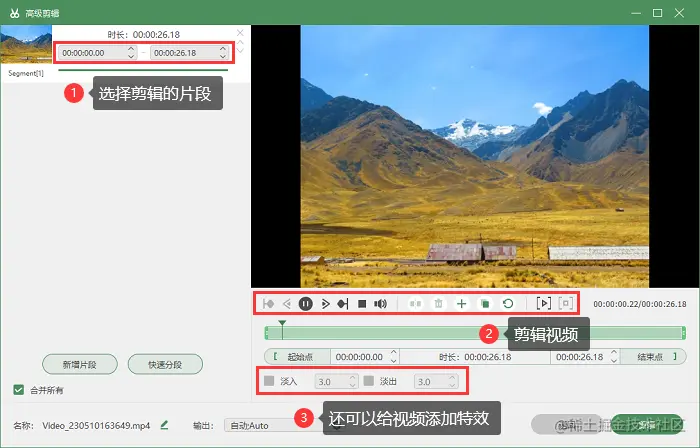 步骤4: 对电脑屏幕录制完成后,可以点击【高级剪辑】,对录屏进行快速分段、剪辑、添加特效等操作,接着需要点击【完成】按钮结束本次录制。
