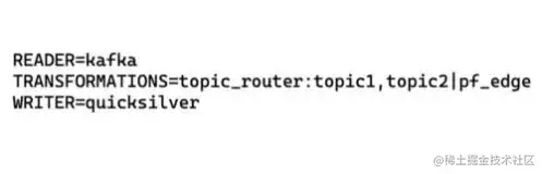 在下面的示例中,读取器是Kafka,写入器是Quicksilver。连接器设置为从topic 1和topic 2读取数据,并应用函数pf_edge。这是完整的配置,其中还包括指标、警报和所有其他进入生产所需的内容,使团队能够轻松遵循最佳实践。团队还可以注册自定义转换,这将是他们需要编写的唯一代码部分。