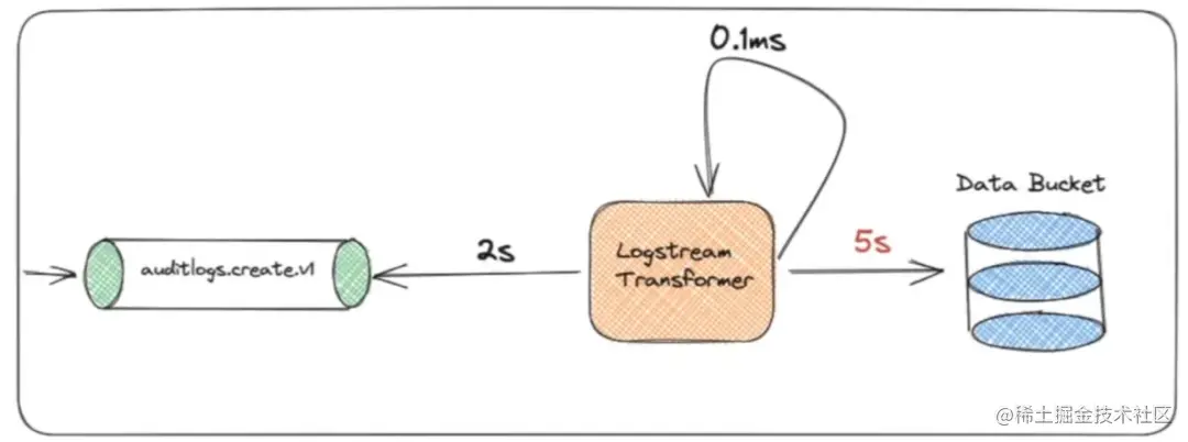 一个例子是我们处理的审计日志,针对我们的Kafka客户:我们建立了一个系统来管理这些日志,允许生产者团队产生事件,而我们监听这些事件,并将数据记录在我们的数据库中。