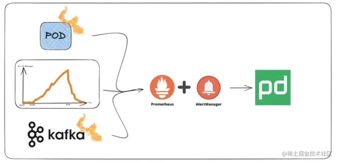 基本的警报流水线由Prometheus和AlertManager组成,警报会发送到PagerDuty。由于重新启动或扩缩容服务并不理想,我们决定探索如何利用Kubernetes并实施健康检查。