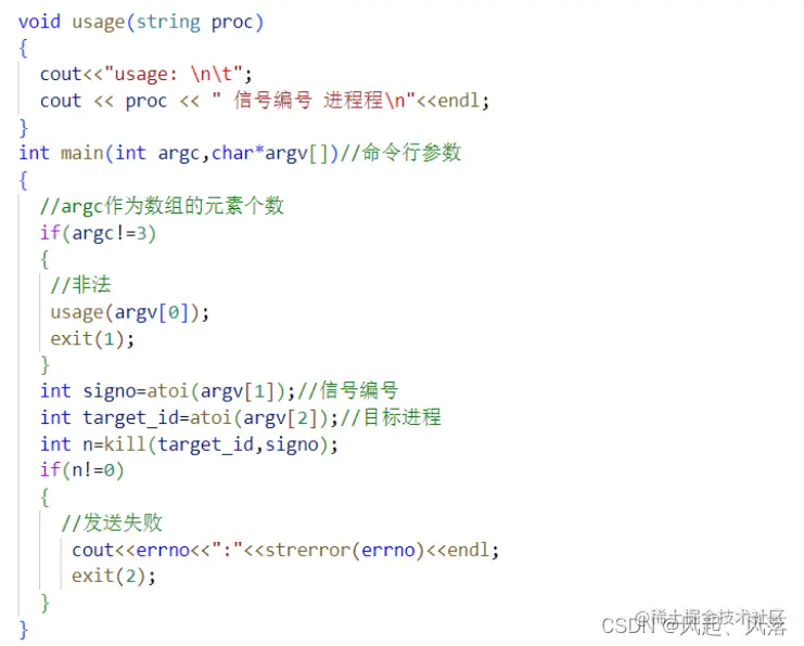 c由于agrv是字符指针数组,而我们想要的目标进程和信号编号都是数字,所以需要使用atoi函数,将字符串转化为整数
