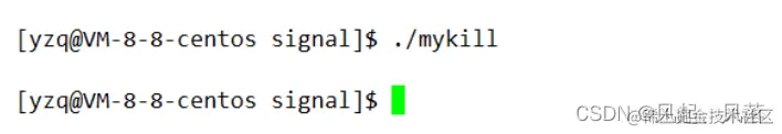 再去调用可执行程序mykill时,自己就结束了,因为自己给自己发送2号信号