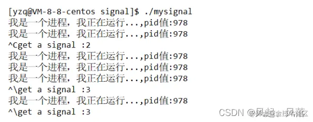 CTRL \ 代表3号信号 ,此时虽然2号信号被置为自定义动作了,但是三号信号还没有,所以依旧能终止进程