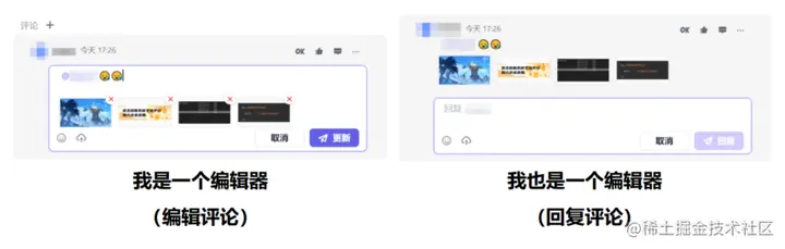 在 LigaAI 中,每个评论都有两个编辑器,一个用来编辑评论,一个用来回复评论;且同一时间最多只允许存在一个活动的编辑器。