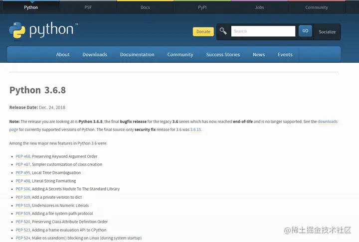 3. 进入python下载页面后,翻到下边目录,下载3.6.8版本的。3.7版本的还不稳定,不建议下载哦~