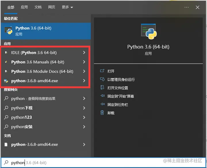 安装完成后,计算机内搜索python,是有四个应用的,就是可以正常使用啦!