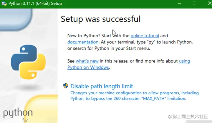 11.提示python安装完成,点击Close,python已安装完成,电脑可以使用了python了。