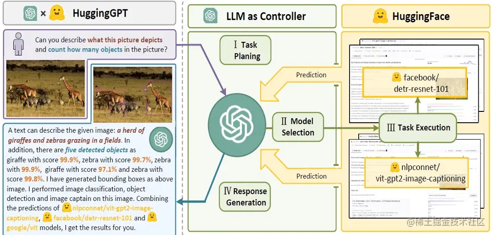HuggingGPT 就能帮你自动分析需要哪些 AI 模型,然后直接去调用 HuggingFace 上的相应模型,来帮你执行并完成。