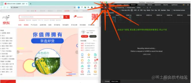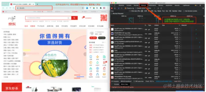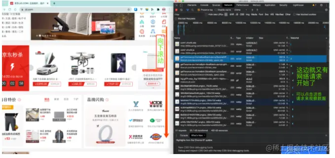 那数据是何时加载进来的呢? 其实就是在我们进行页面向下滚动的时候, jd就在偷偷的加载数据了, 此时想要看到这个页面的加载全过程, 我们就需要借助浏览器的调试工具了(F12)
