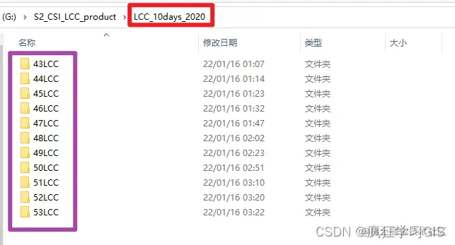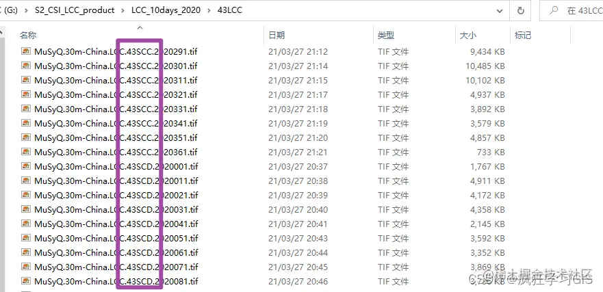 同时,在每一个遥感影像文件的文件名中,都有分幅条带号这一字段;例如,打开43LCC这一子文件夹,如下图所示。