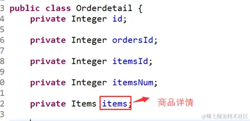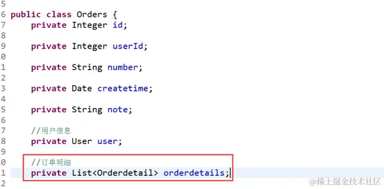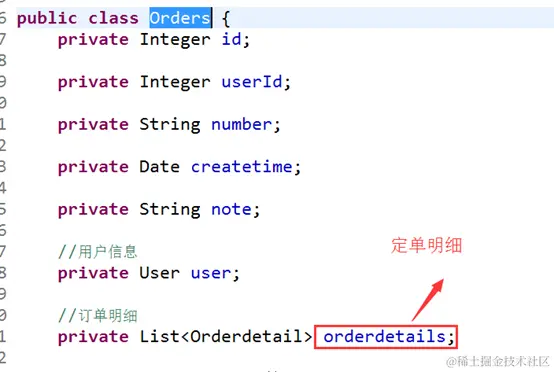 在Orders中添加订单明细列表属性List detailList,将订单的明细映射到detailList
