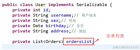在user类中添加订单列表属性List orderslist,将用户创建的订单映射到orderslist