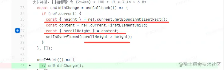 其中getBoundingClientRect这个api,会造成立即回流,虽然回流的元素很少,耗时较短,可是单元格实在太多,以每次1ms来计,20条数据25列,那就是500单元格,耗时都不少。可改成通过字符数跟font-size来大体估算,字符串所需要的宽度,以确定是否展示tooltip,虽未必精准可也可满足需求。代码大体思路如下。