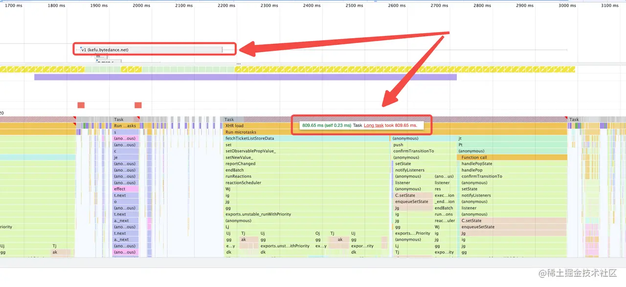 经过这两点处理,重新performance录制了下,每页20条数据longtask耗时由以前的800~900ms优化到300~400ms,每页100条数据longtask耗时由以前的2s左右优化到1s左右。
