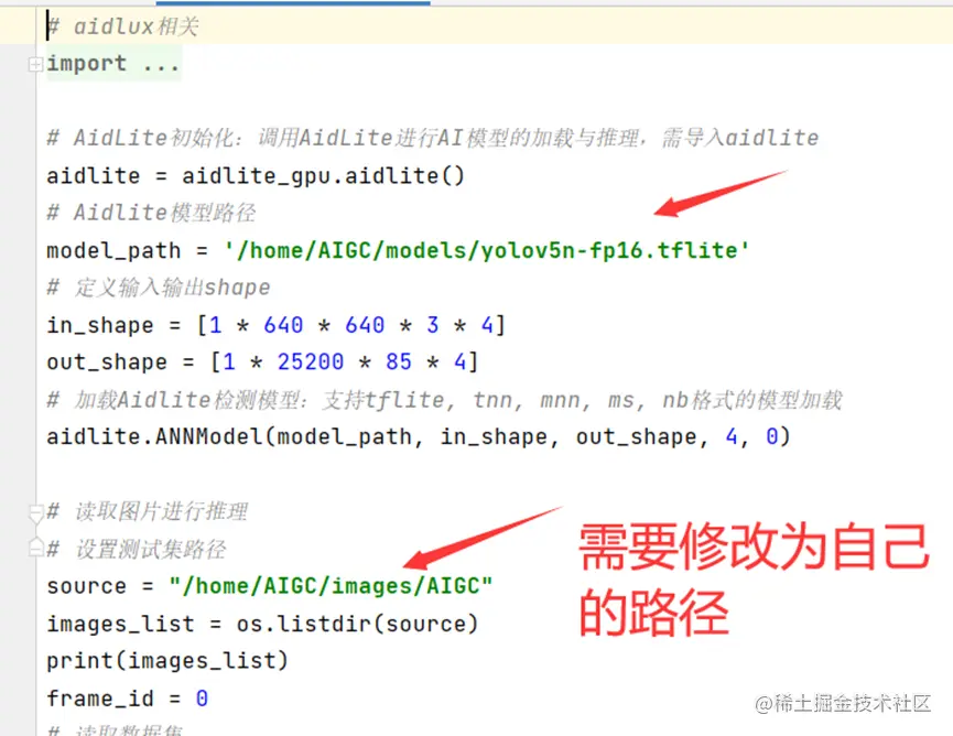 上传文件后把代码包中aidlux_main.py修改代码,其中