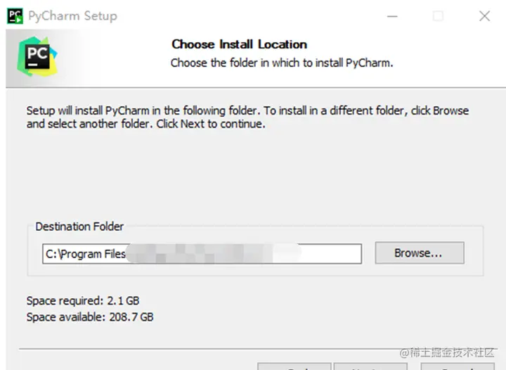 4. 设置安装位置,可以自定义PyCharm的安装路径,设置完成后,单击Next