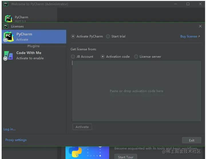 9. 安装后,激活PyCharm。PyCharm激活和插件(Plugins,Code With Me)激活。这里介绍PyCharm的几种激活方式。