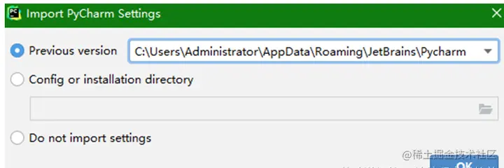 Previous version: 默认导入以前PyCharm设置文件,会自动显示以前的PyCharm设置文件的路径。
