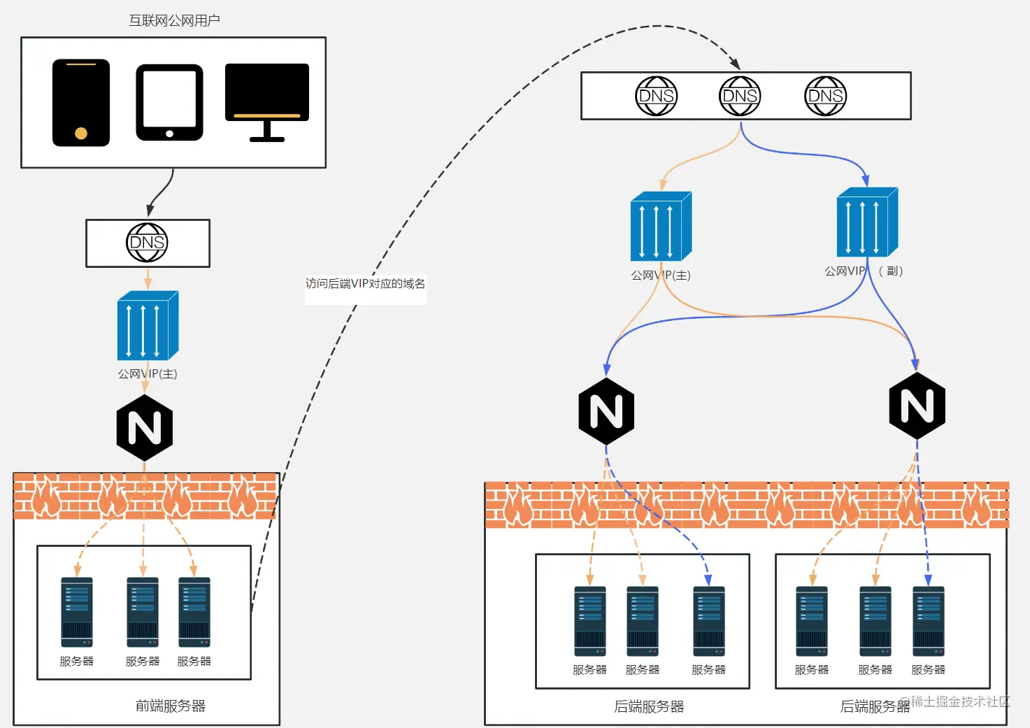 公网 VIP 在公网真实存在、内网 vip 在公司内网真实存在