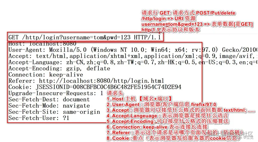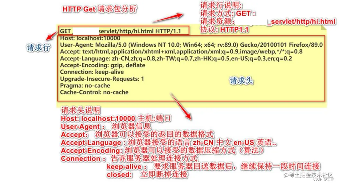 1. HTTP 请求包分析(GET)图, 说明 可以通过浏览器抓包分析
