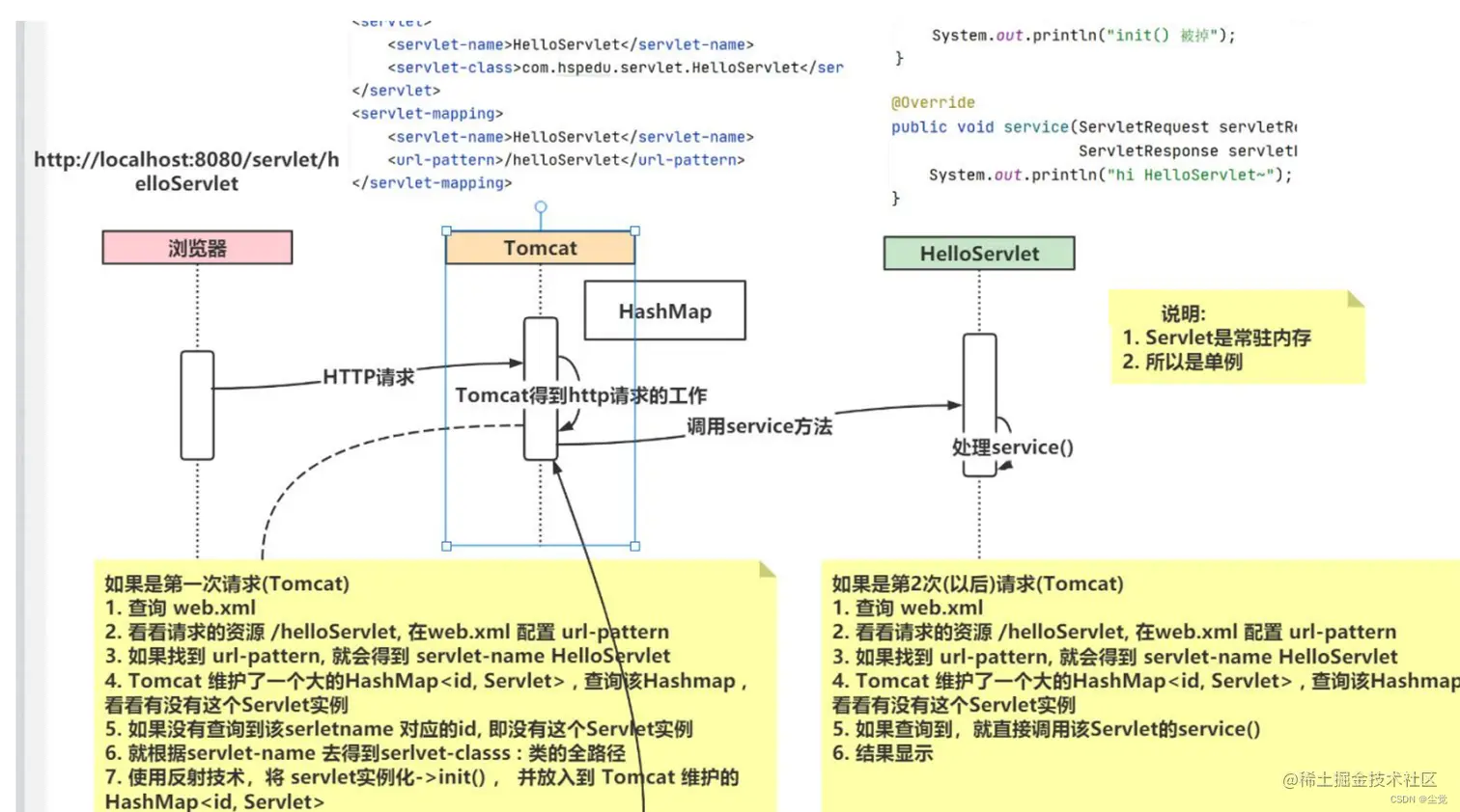 2. 在 Servlet 容器启动后,浏览器首次向 Servlet 发送请求(这个前面说过)