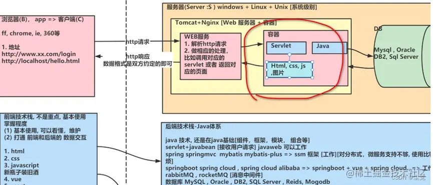 1. 他是由服务器端调用和执行的(一句话:是Tomcat解析和执行)