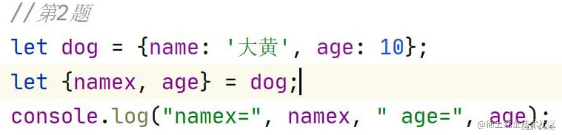 let {namex, age} = dog;