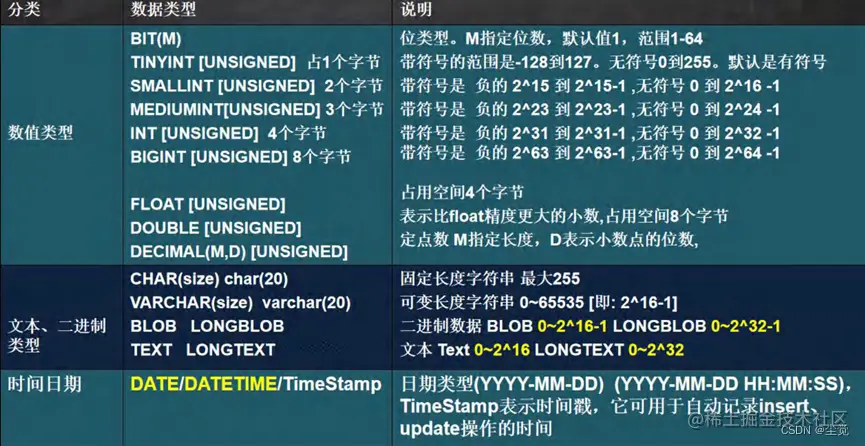 2.如果一个字段的长度是不确定,我们使用varchar,比如留言,文章查询速度char>varchar