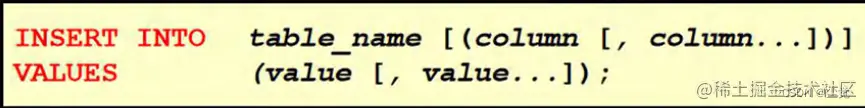 - 在 values 中列出的数据位置必须与被加入的列的排列位置相对应