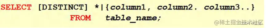 - DISTINCT可选,指显示结果时,是否去掉重复数据