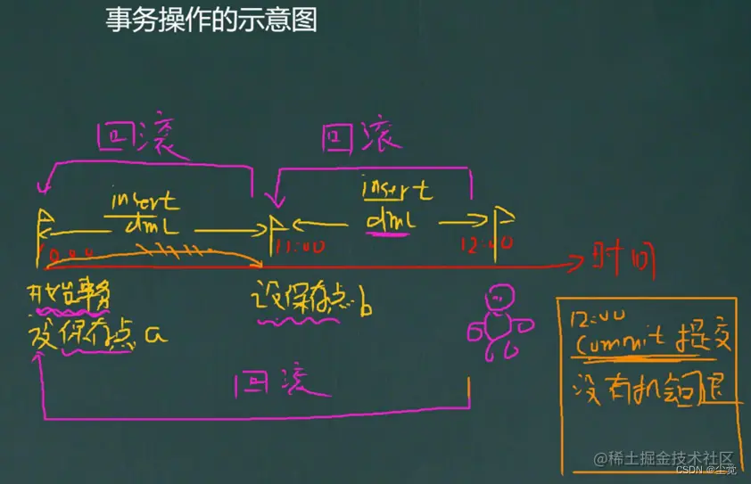 - 在其中某个操作失败或出现异常时,调用Connection的 rollback();方法回滚事务